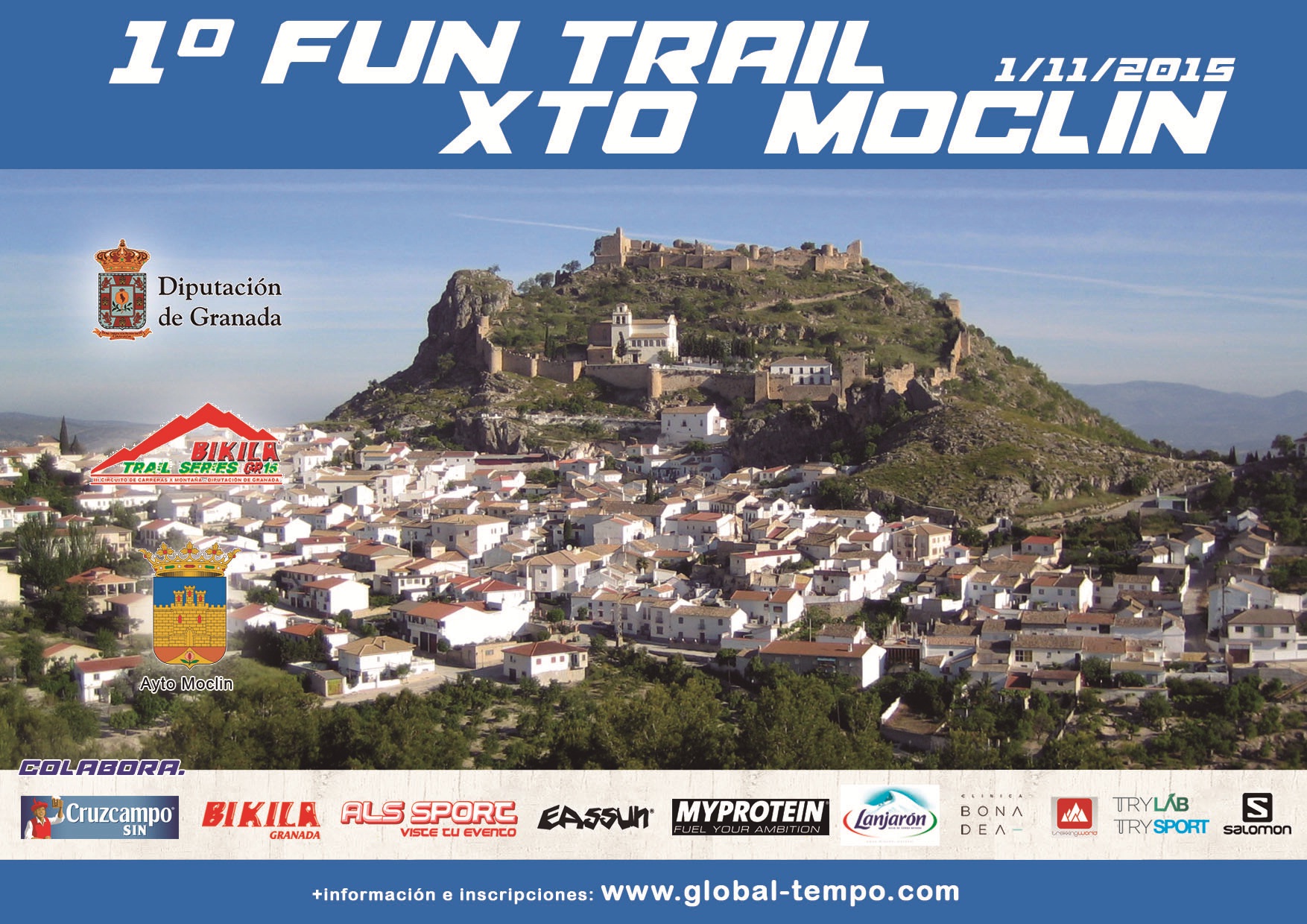 El I FUN TRAILXTO MOCLÍN, está organizado por el Ayuntamiento de Moclín junto con la Delegación de Deportes de la Diputación de Granada y con el patrocinio de Deportes Bikila Granada, Salomon, ALS Sport, TrekkingWorld, Aguas de Lanjarón, My Protein, Clínica Bona Dea, Eassun, TRYLab, TRYSport y Granada Comunicaciones. Está incluido dentro del III Circuito de Carreras por Montaña Diputación de Granada Bikila Granada Trail Series GR15.Recorrido Virtual DISTANCIA MINI-TRAILDocumentos de la Carrera