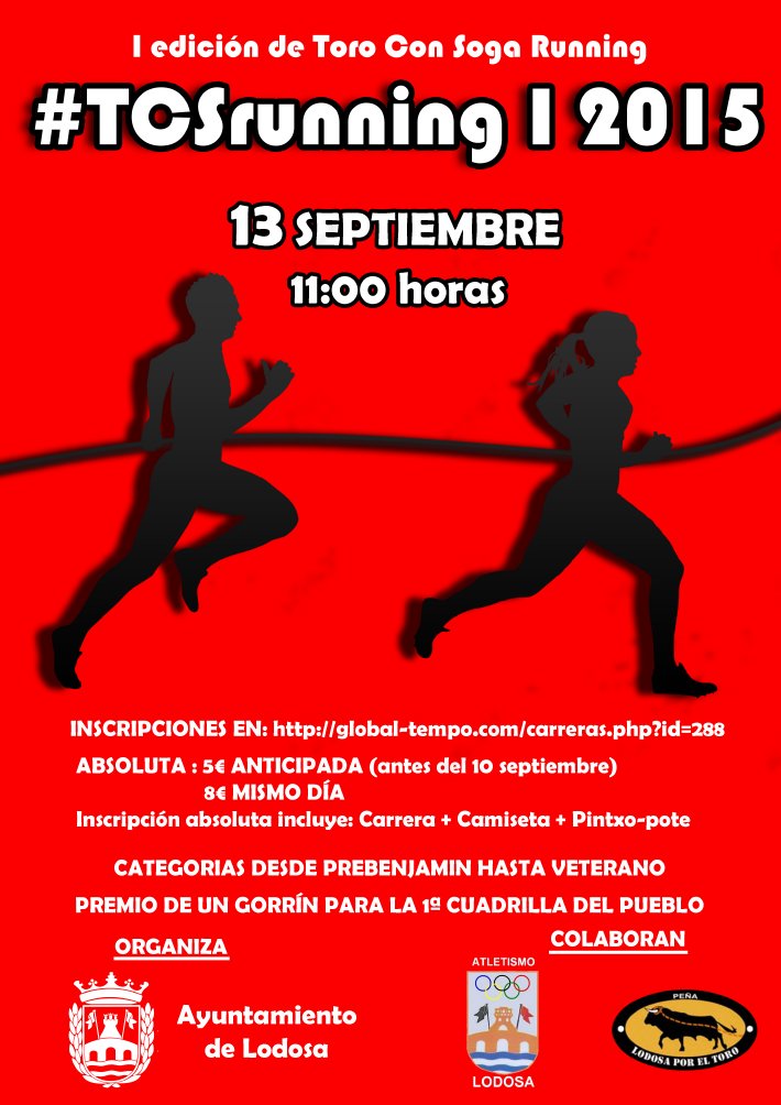 El próximo día 13 de septiembre de 2015, domingo, se celebra la 1ª edición de la Toro Con Soga Running organizada por el Ayuntamiento de Lodosa, con la colaboración del Club Atletismo Lodosa y la Asociación “Lodosa por el Toro”.
