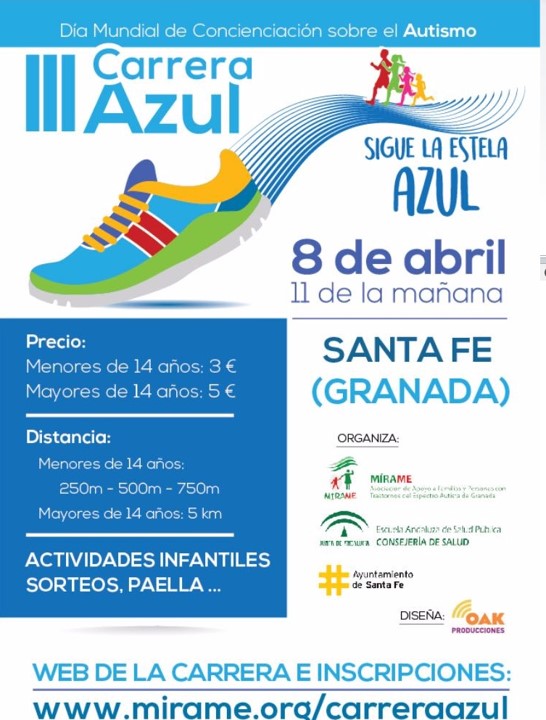 Este año, el 8 de abril (para celebrar el Día Mundial de Concienciación sobre el Autismo), vuelve a las calles de Santa Fe la Carrera Azul por el Autismo. Nuestro objetivo es claro: dar a conocer el Autismo, las capacidades de las personas con autismo y sus necesidades, así como concienciar por el respeto a sus derechos en una sociedad cada vez más inclusiva.